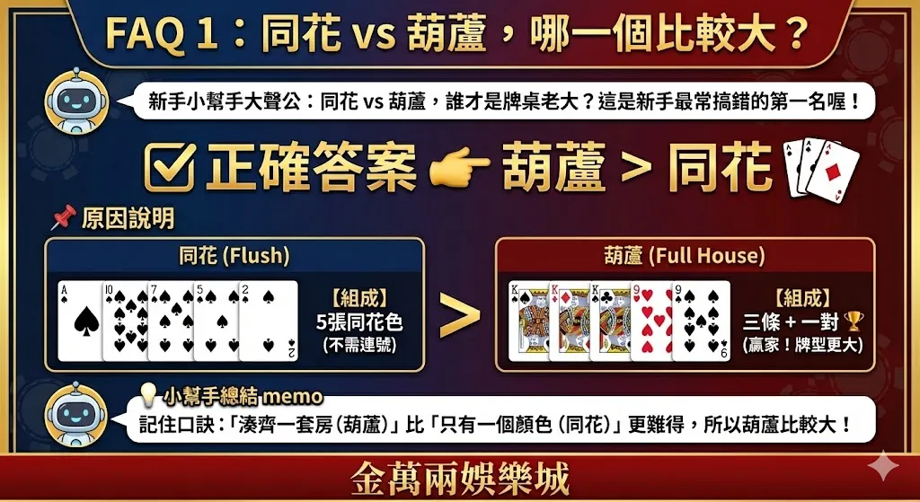 FAQ 1:同花 vs 葫蘆,哪一個比較大?