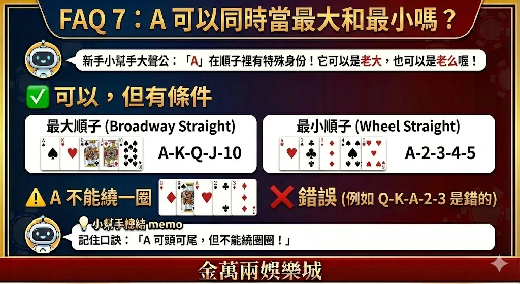 ⚠️ A 不能繞一圈(例如 Q-K-A-2-3 是錯的)。